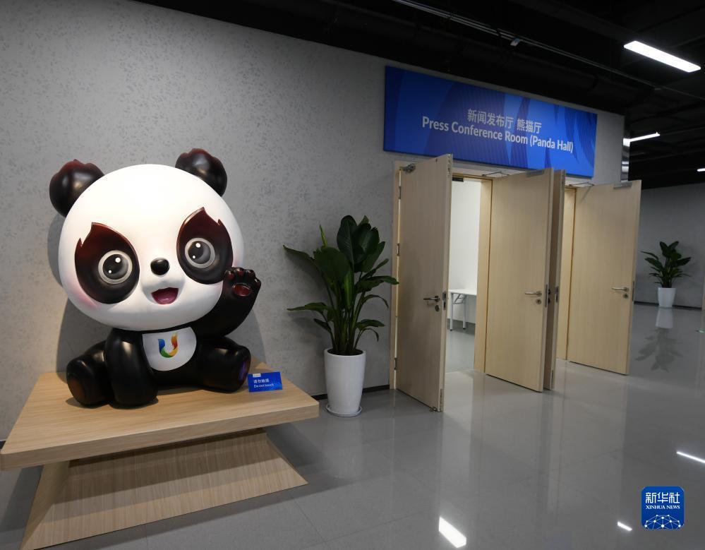 這是7月13日拍攝的成都大運會主媒體中心的新聞發布廳外景。