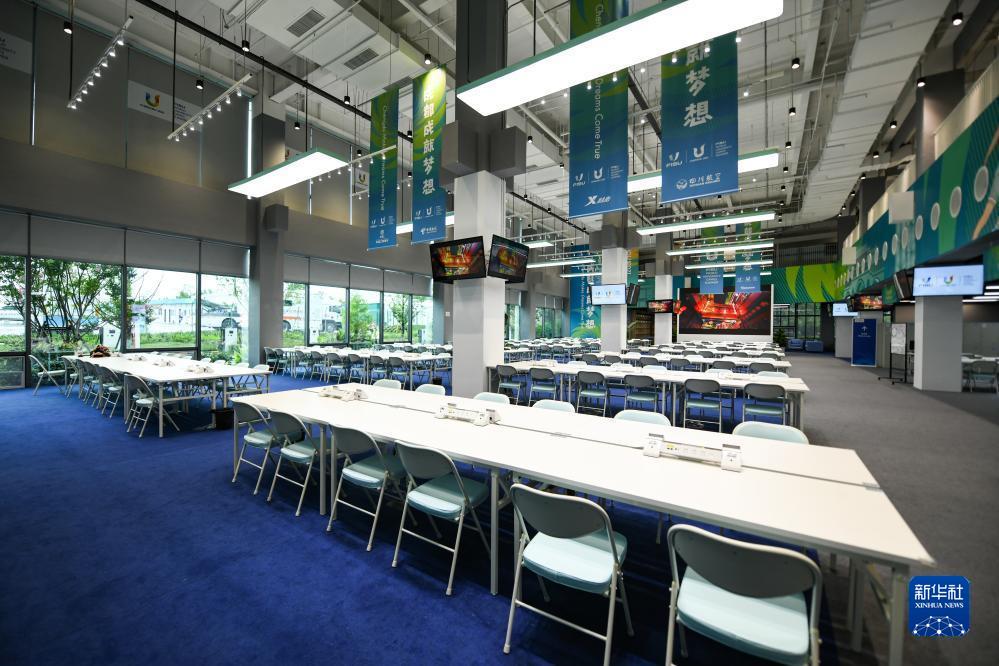 這是7月13日拍攝的成都大運會主媒體中心媒體工作間。