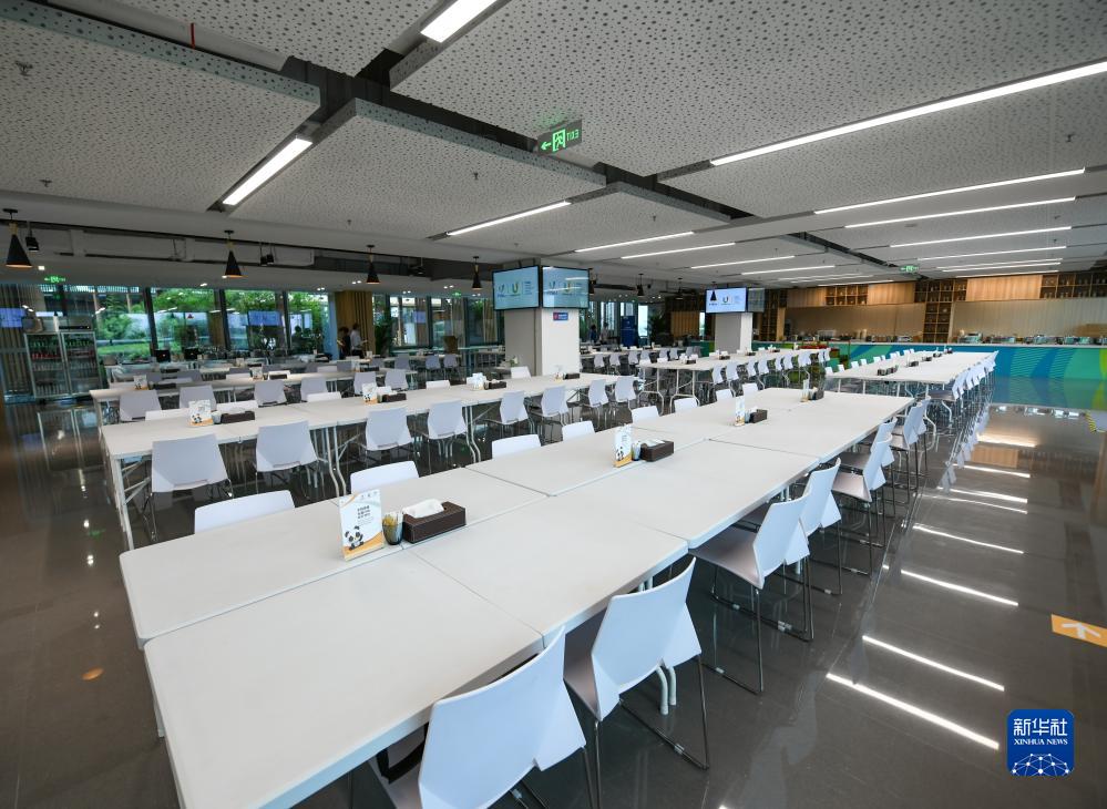 這是7月13日拍攝的成都大運(yùn)會(huì)主媒體中心的媒體餐廳。