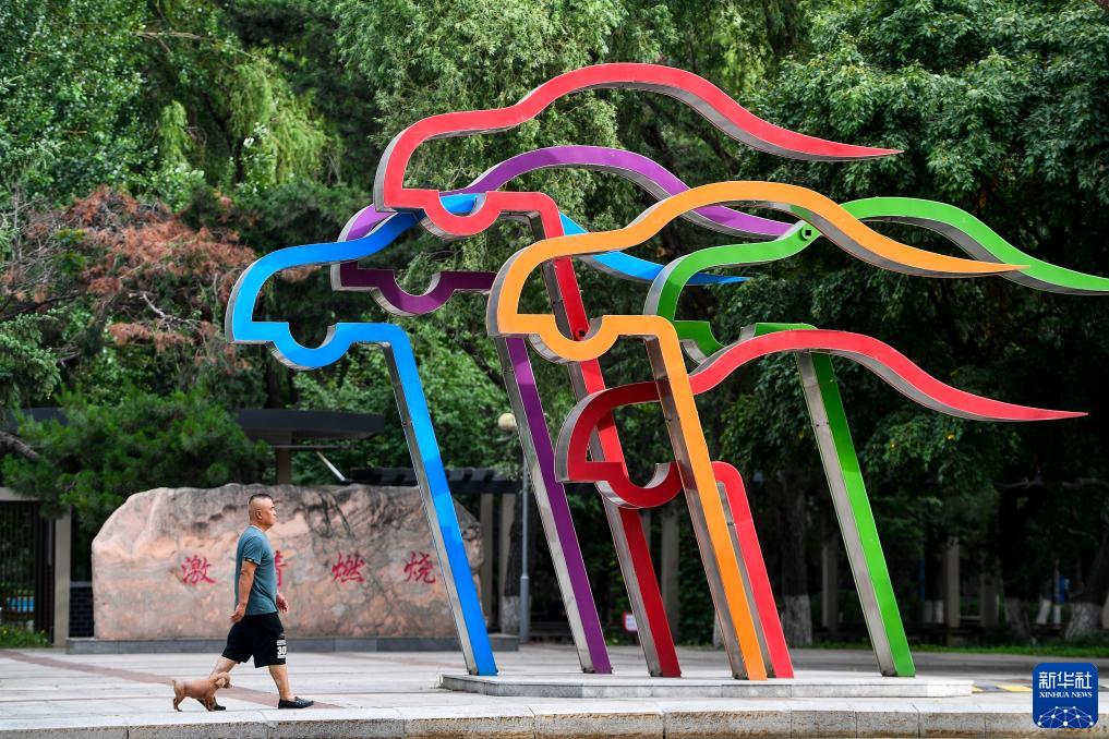 市民從長(zhǎng)春市一處汽車主題裝飾前經(jīng)過(7月6日攝)。