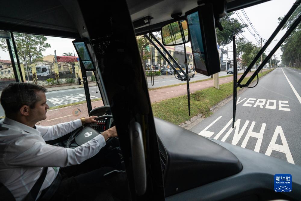 7月12日,在巴西圣保羅州圣若澤杜斯坎普斯,司機駕駛比亞迪純電動大巴在該市快速公交系統“綠線”上行駛。