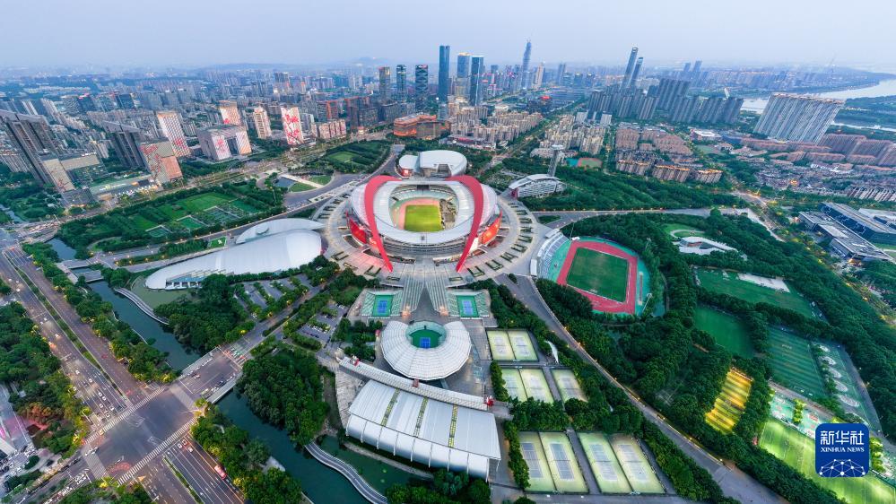 這是南京奧體中心(無人機照片,6月13日攝)。