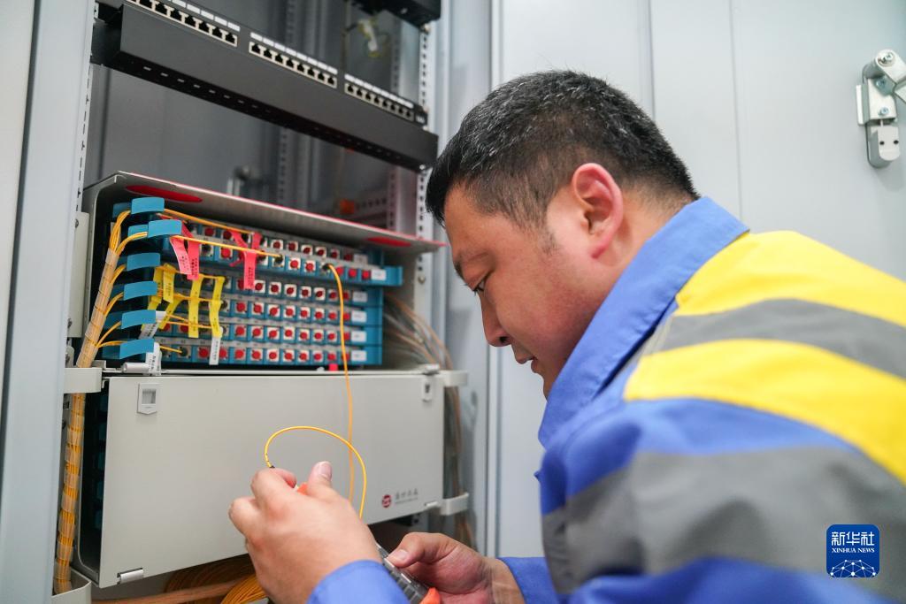 7月11日,在哈齊高鐵1號基站,魏巍在進行光纜備用通道測試作業。