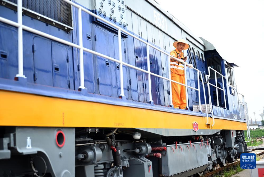 7月13日,合肥火車站運轉車間調車長崔中虎在指揮調車作業。