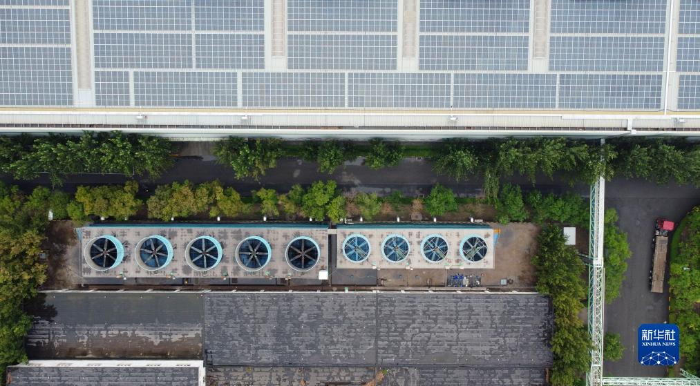 天津市新天鋼鋼鐵集團有限公司廠區(qū)屋頂安裝有太陽能光伏板(7月12日攝,無人機照片)。