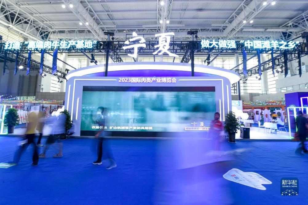 這是7月14日拍攝的2023國際肉類產業博覽會現場。