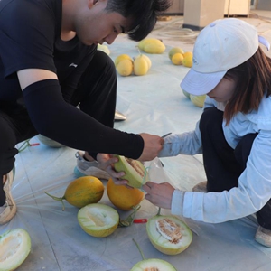 7月14日拍攝的甜瓜果實性狀調查現場。