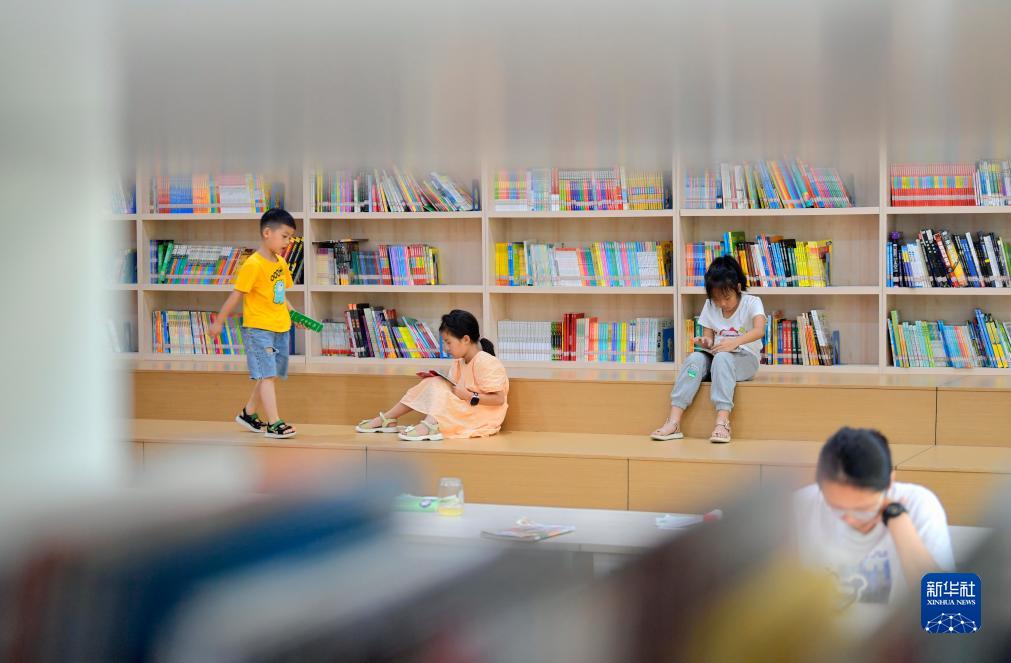 7月14日,小朋友在湖北省恩施土家族苗族自治州宣恩縣圖書館閱讀書籍。