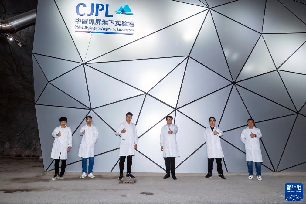 這是7月3日在位于錦屏山隧道的中國錦屏地下實驗室一期外拍攝的中國暗物質實驗(CDEX)合作組成員梁藝帆、景明坤、王鈺鋒、楊麗桃、聶奇緣、尹箐浩(從左至右)。