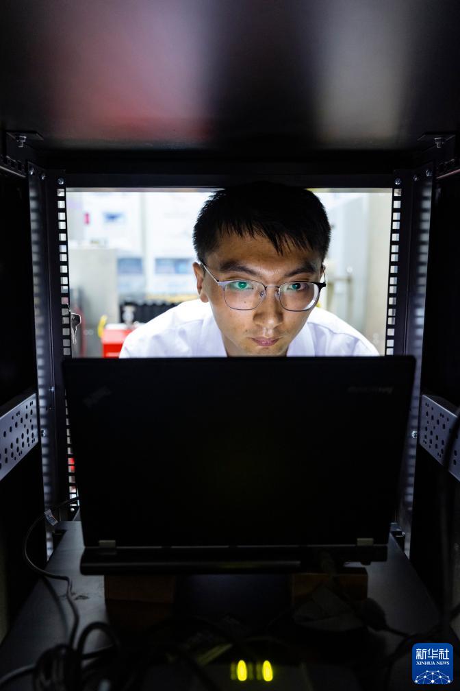 7月3日,在中國錦屏地下實(shí)驗(yàn)室,實(shí)驗(yàn)組成員景明坤在檢查實(shí)驗(yàn)數(shù)據(jù)。新華社記者 沈伯韓 攝