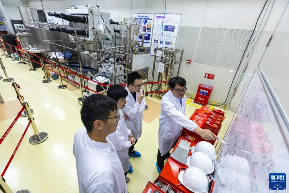 7月3日,在中國錦屏地下實驗室,楊麗桃博士(右一)與實驗組成員討論實驗細節。新華社記者 沈伯韓 攝