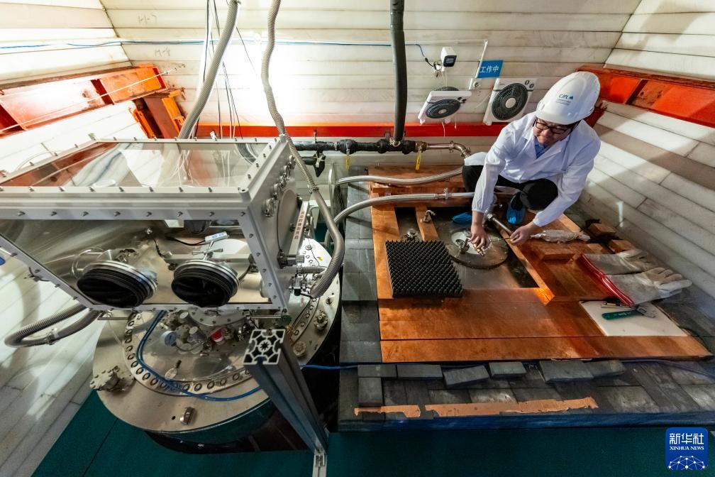 7月3日,在中國錦屏地下實驗室,楊麗桃博士在檢查實驗裝置運行情況。新華社記者 沈伯韓 攝