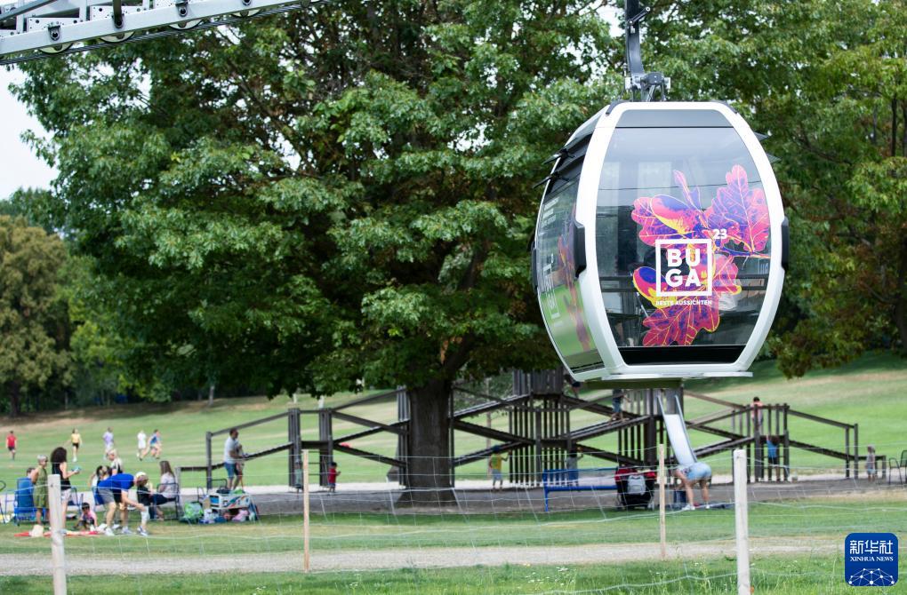 7月14日,游客在德國(guó)曼海姆的路易森公園參觀聯(lián)邦園藝展。