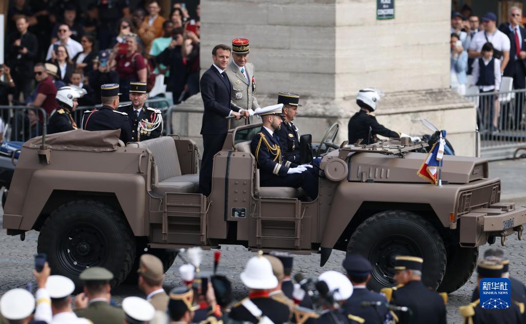 7月14日,法國總統馬克龍抵達巴黎協和廣場的國慶閱兵式現場。新華社記者 高靜 攝