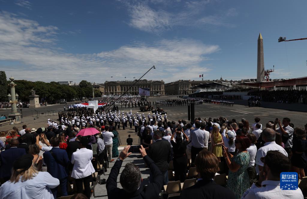 這是7月14日在法國巴黎協和廣場拍攝的國慶閱兵式現場。新華社記者 高靜 攝