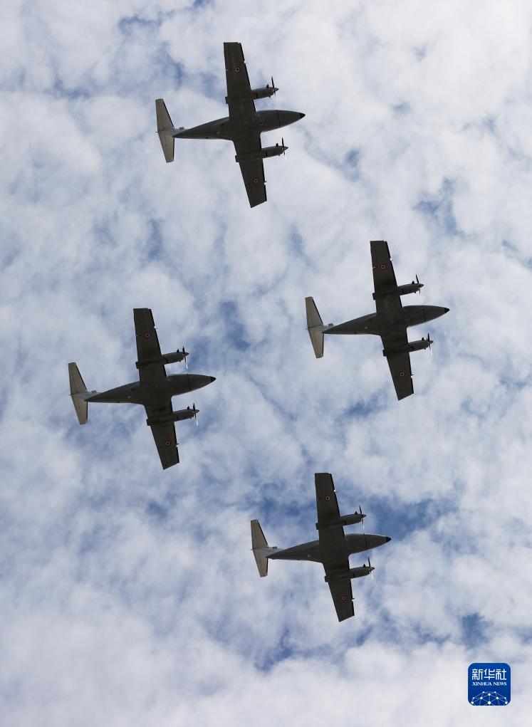 7月14日,法國空軍飛機參加在巴黎舉行的國慶閱兵式。新華社記者 高靜 攝