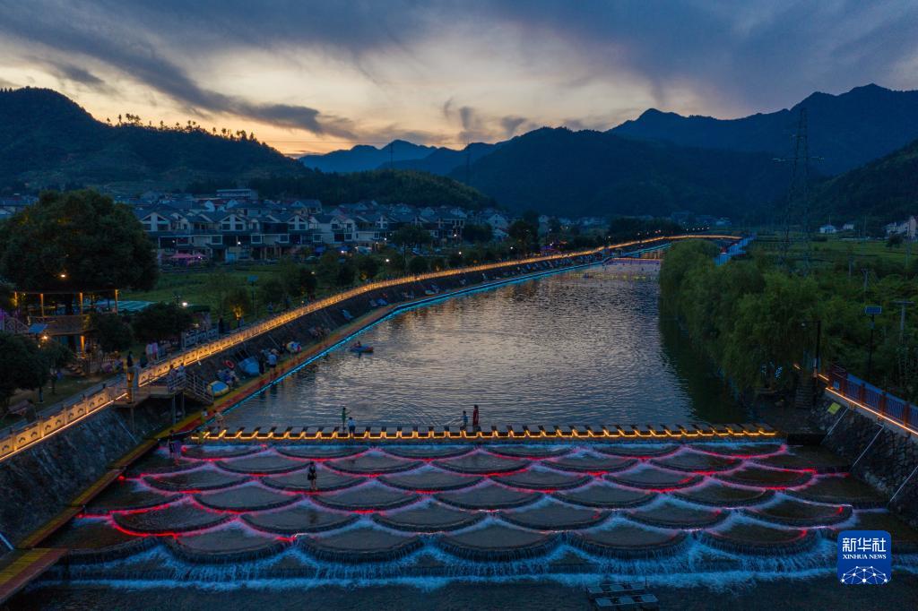 7月14日拍攝的乾潭鎮(zhèn)下包村胥溪天然泳場(無人機照片)。