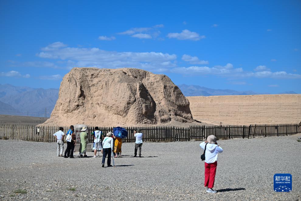 游客在甘肅省嘉峪關市參觀長城第一墩(7月14日攝)。