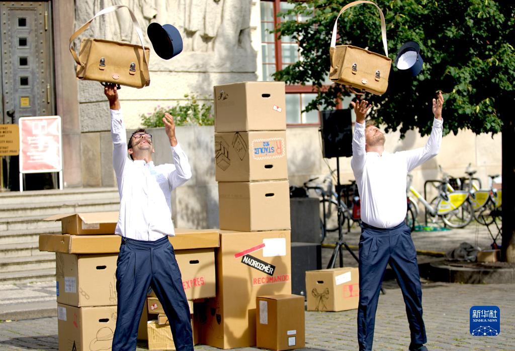 7月14日,藝術工作者在捷克首都布拉格街頭戲劇節上表演。