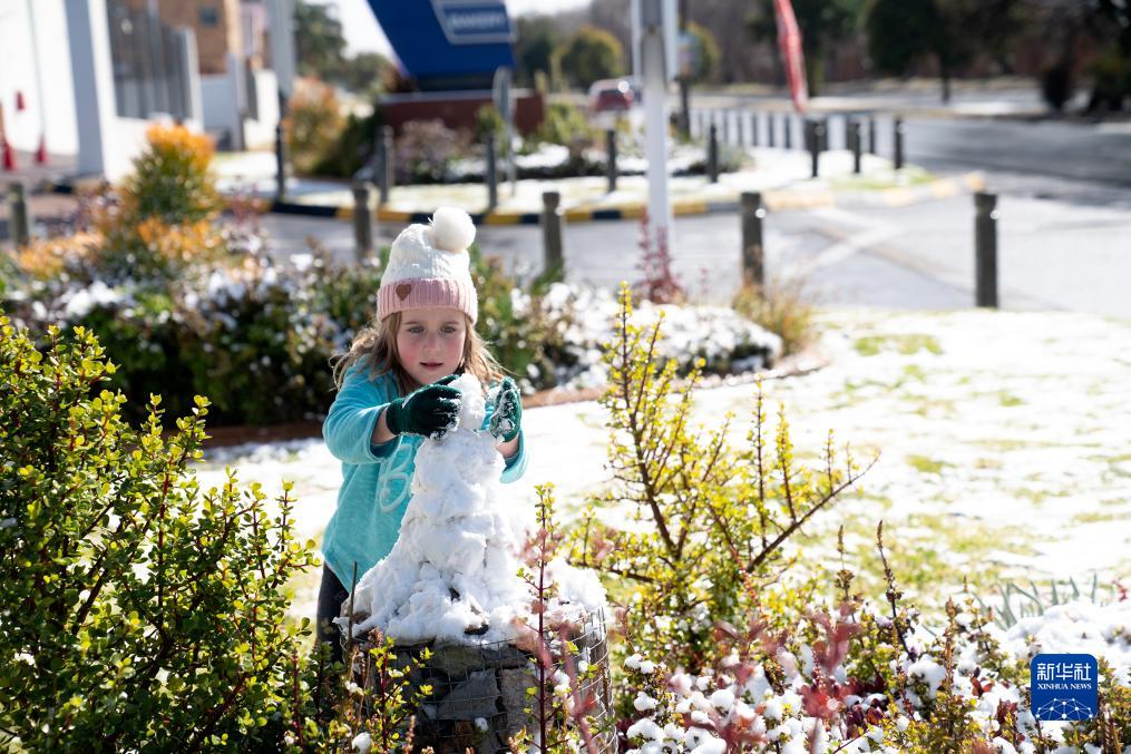 7月10日,在南非約翰內斯堡,一名女孩堆雪人。