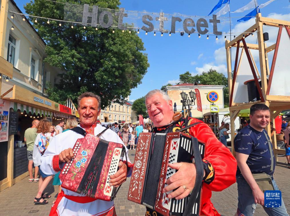 7月14日,演員在白俄羅斯維捷布斯克“斯拉夫巴扎”國際藝術節上演奏。