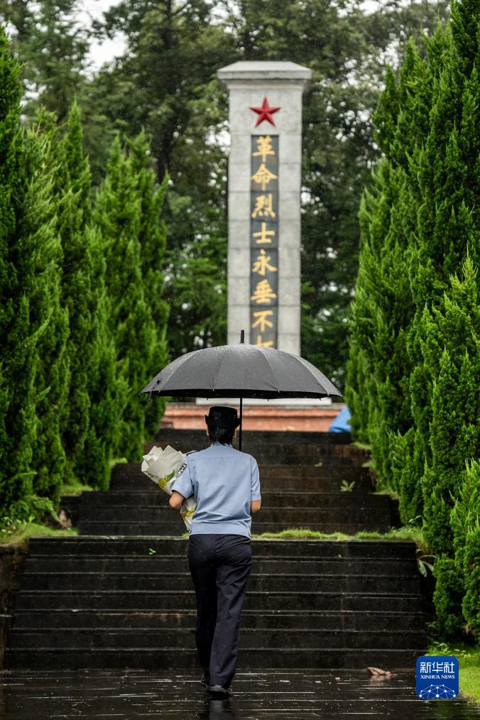 雨中,一把黑傘,一束白花,一身警服的尹銘燕拾級而上,走向云南德宏州隴川縣烈士陵園的最高處,那里長眠著她的哥哥尹銘志。