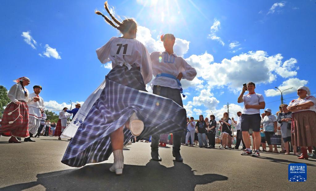 當日,一場民族舞蹈比賽在白俄羅斯維捷布斯克舉行。新華社發(任科夫攝)
