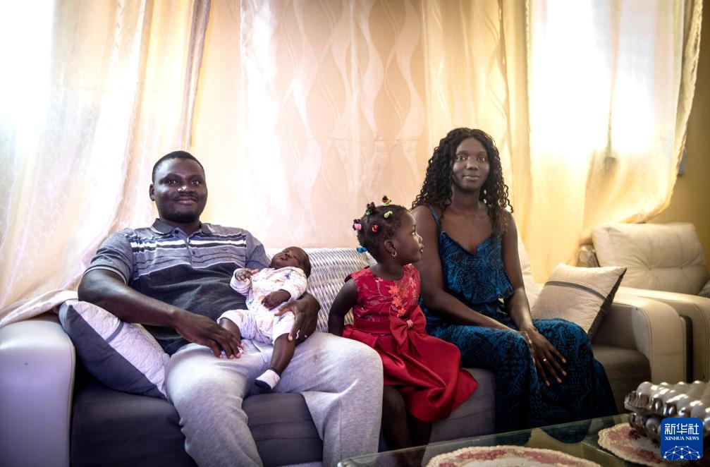 5月13日,蘇信一家在塞內(nèi)加爾捷斯的家中合影。新華社記者 李亞輝 攝