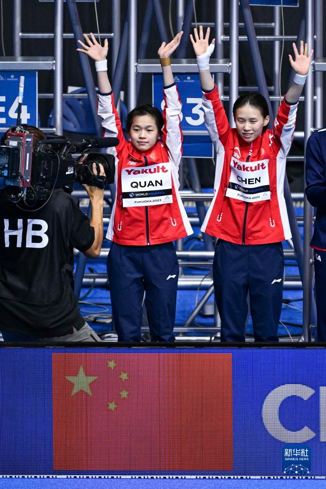 當日,在日本福岡舉行的2023年福岡世界游泳錦標賽跳水女子雙人10米臺決賽中,中國組合陳芋汐/全紅嬋以369.84分的總成績奪得冠軍。