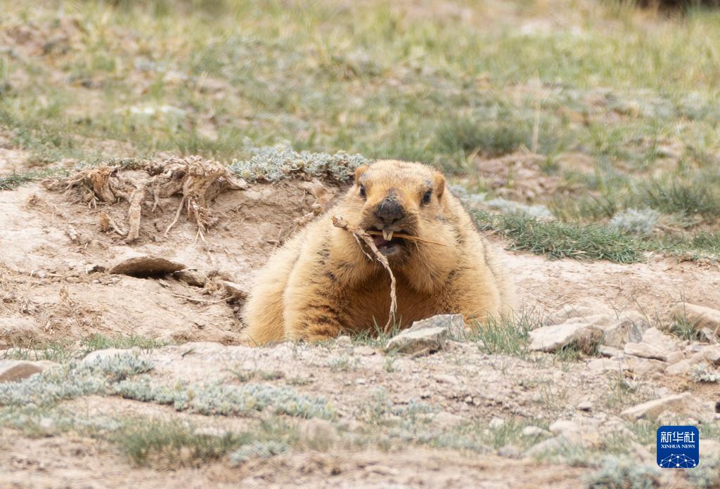 6月30日,在新疆阿爾金山國(guó)家級(jí)自然保護(hù)區(qū),一只喜馬拉雅旱獺正在進(jìn)食。