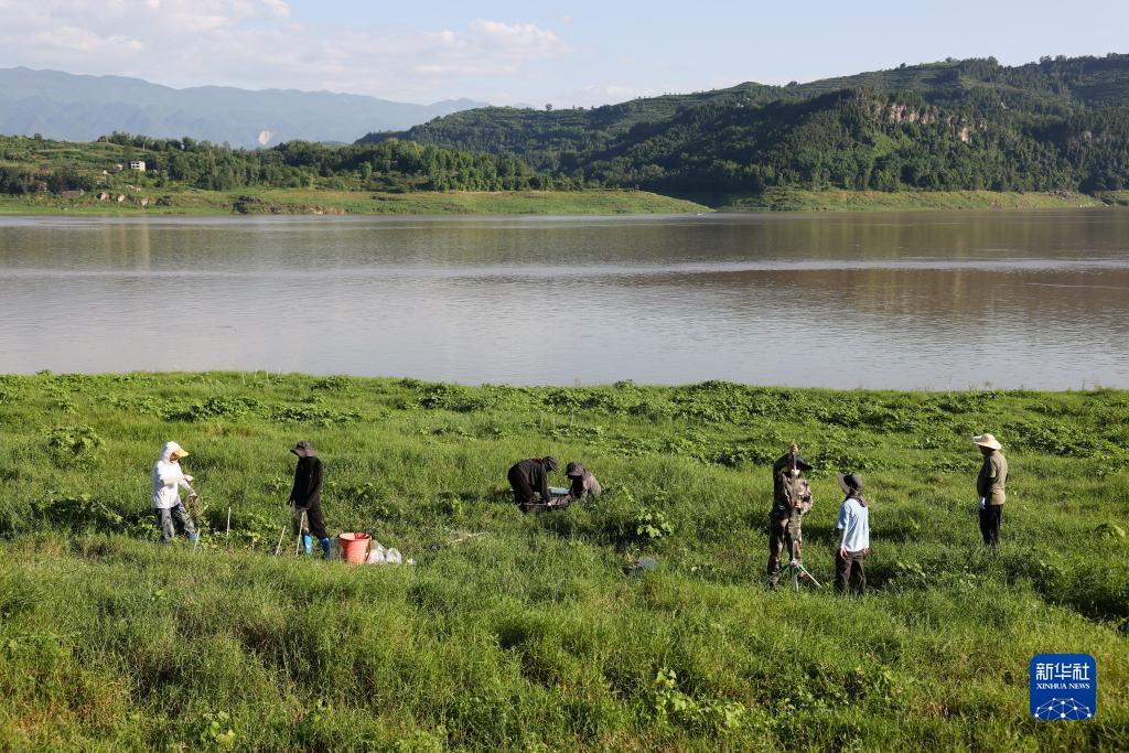 在中國科學院三峽庫區(qū)水土保持與環(huán)境研究站,中國科學院成都山地所科研人員在庫區(qū)消落帶上開展相關監(jiān)測(7月5日攝)。