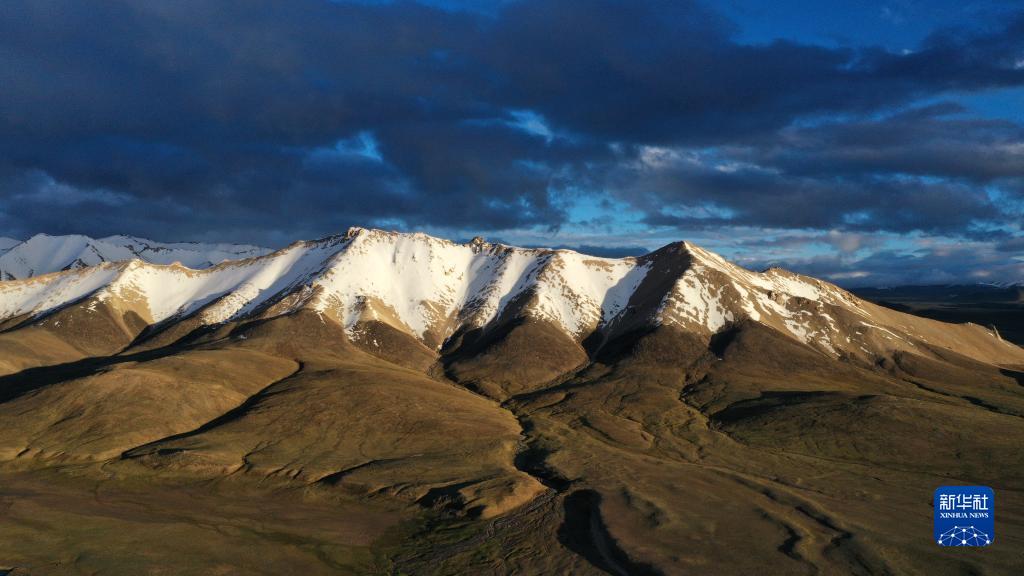 7月6日在新疆阿爾金山國家級自然保護區兔子湖周邊拍攝的雪山(無人機照片)。