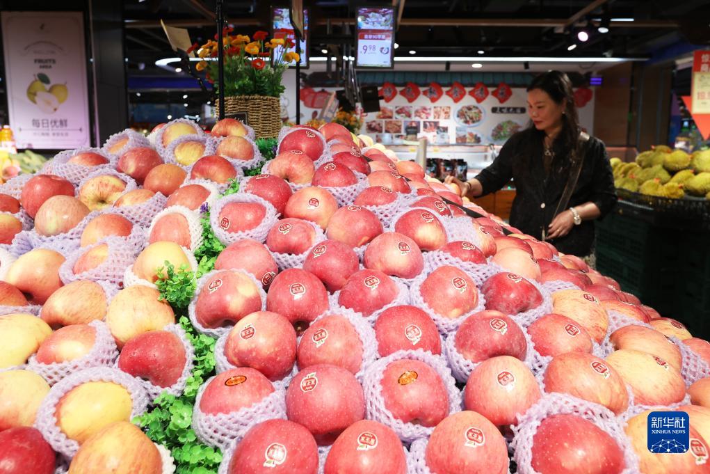消費(fèi)者在貴州省岑鞏縣一家超市內(nèi)選購水果(6月9日攝)。