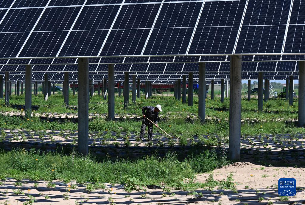 近年來,河北省圍場滿族蒙古族自治縣充分發揮資源優勢,大力發展綠色產業,采取光伏、畜牧飼料種植和綠色養殖相結合的方式,利用光伏板下土地種植優質牧草,提高草原植被覆蓋率,優化生態環境。目前,該縣“牧光互補”實現年發電5.73億度、年產值2.2億元,帶動300余名農牧民就業。