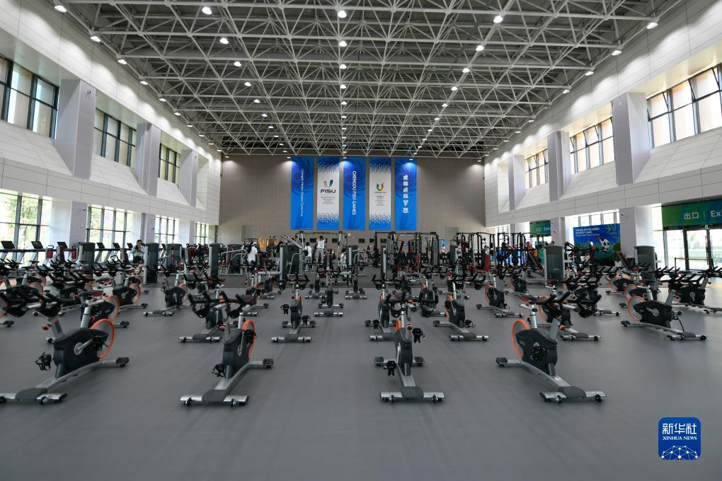 這是7月16日拍攝的大運村健身中心的器械區。