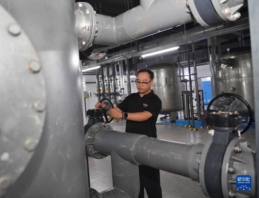 7月16日,華潤置地員工在游泳跳水館水處理機房巡檢過濾系統。