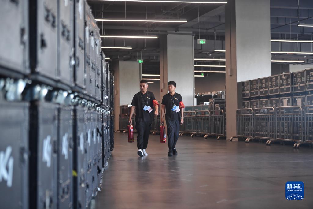 7月16日,華潤置地有限公司員工在主體育場內進行消防安全巡查。
