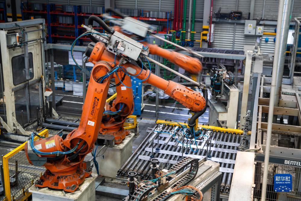 7月16日,在位于重慶市兩江新區的重慶至信實業集團有限公司,機械手臂在熱壓車間內作業。