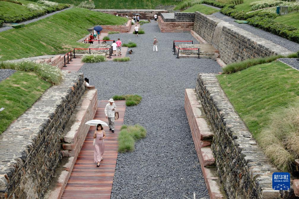 7月20日,在成都東華門遺址公園外場遺址區(qū),人們在參觀原狀展示的明代蜀王府水道遺跡。