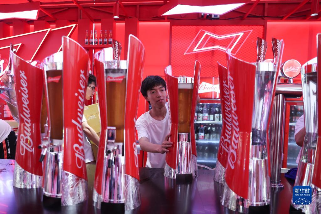 7月20日,工作人員在準備啤酒。