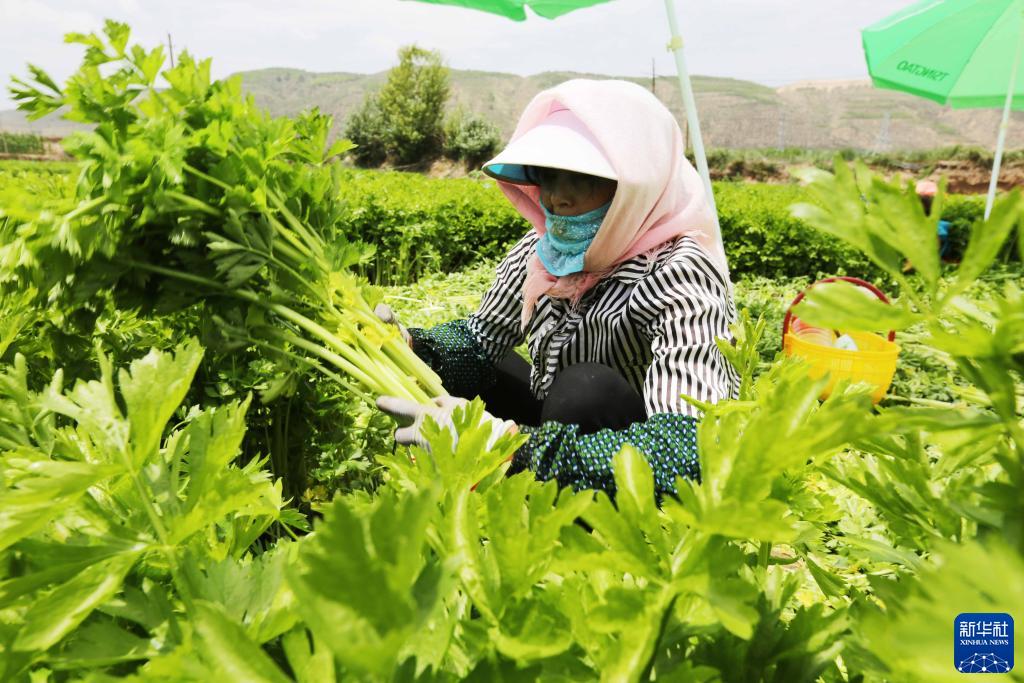 目前,位于黃土高原的甘肅省定西市種植的高原夏菜正值采收旺季,菜農趁著晴好天氣采收、包裝、外運各種蔬菜。