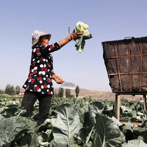 7月20日,甘肅省定西市安定區香泉鎮農民在采收蔬菜。