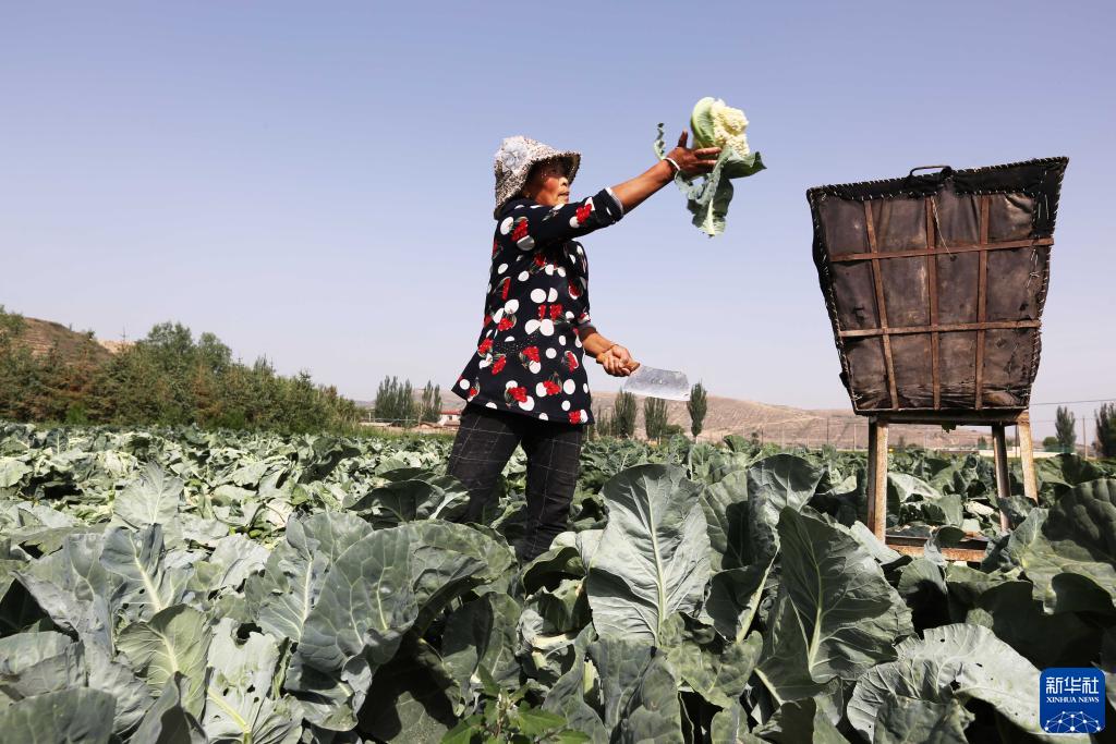 目前,位于黃土高原的甘肅省定西市種植的高原夏菜正值采收旺季,菜農趁著晴好天氣采收、包裝、外運各種蔬菜。