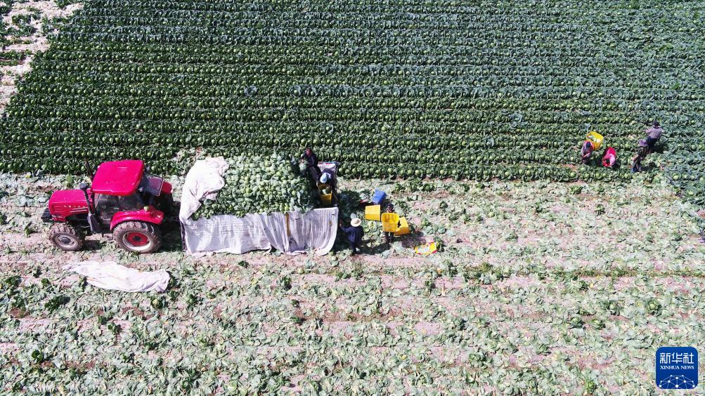目前,位于黃土高原的甘肅省定西市種植的高原夏菜正值采收旺季,菜農趁著晴好天氣采收、包裝、外運各種蔬菜。