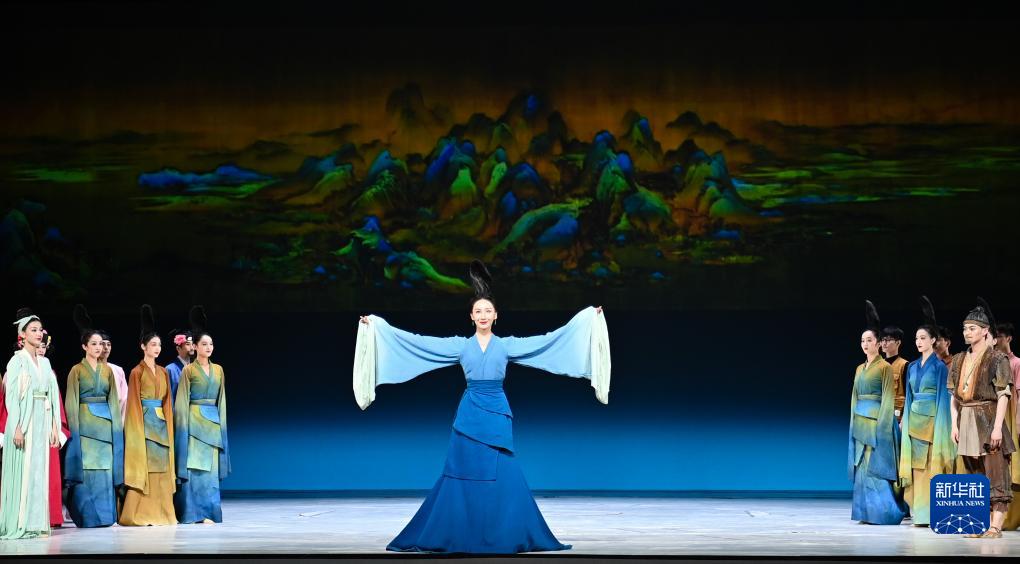 7月20日,中國東方演藝集團(tuán)演員在烏魯木齊文化中心大劇院表演舞蹈詩劇《只此青綠》。