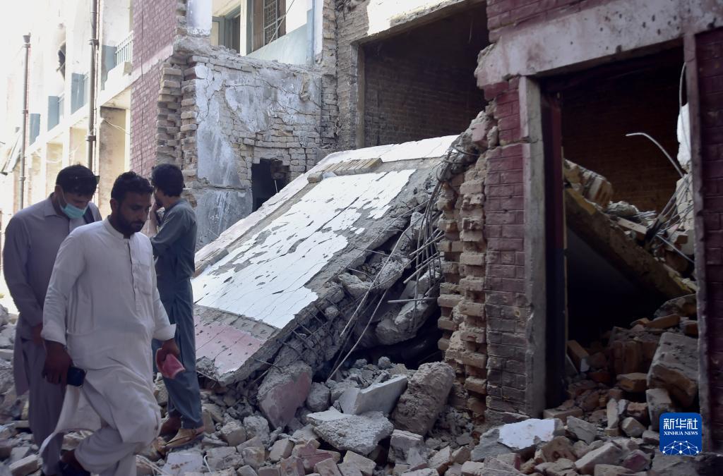 7月20日,在巴基斯坦西北部開伯爾-普什圖省開伯爾部落地區(qū),人們?cè)谶B環(huán)自殺式爆炸襲擊事件現(xiàn)場(chǎng)查看。