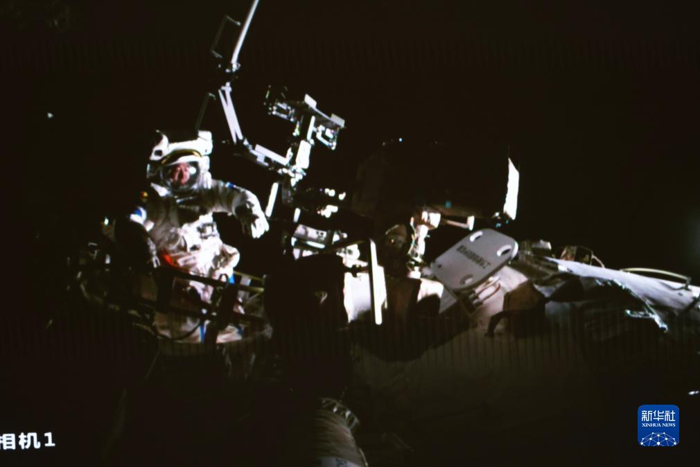 這是在北京航天飛行控制中心拍攝的神舟十六號航天員景海鵬開展艙外操作的畫面(7月20日攝)。