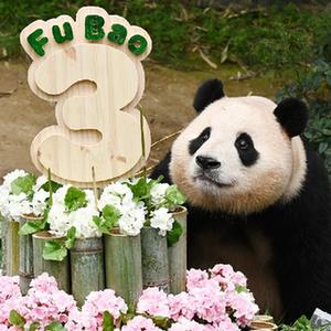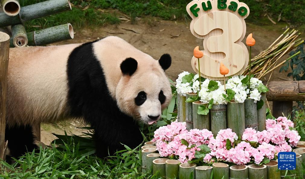 7月20日,在韓國(guó)出生的大熊貓“福寶”迎來3歲生日,園區(qū)制作了由竹子和胡蘿卜組成的“蛋糕”為其慶生。
