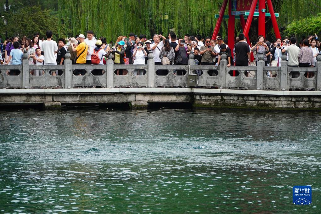 進入夏季以來,位于山東省濟南市的趵突泉吸引了大量暑期旅游的游客前來觀賞。