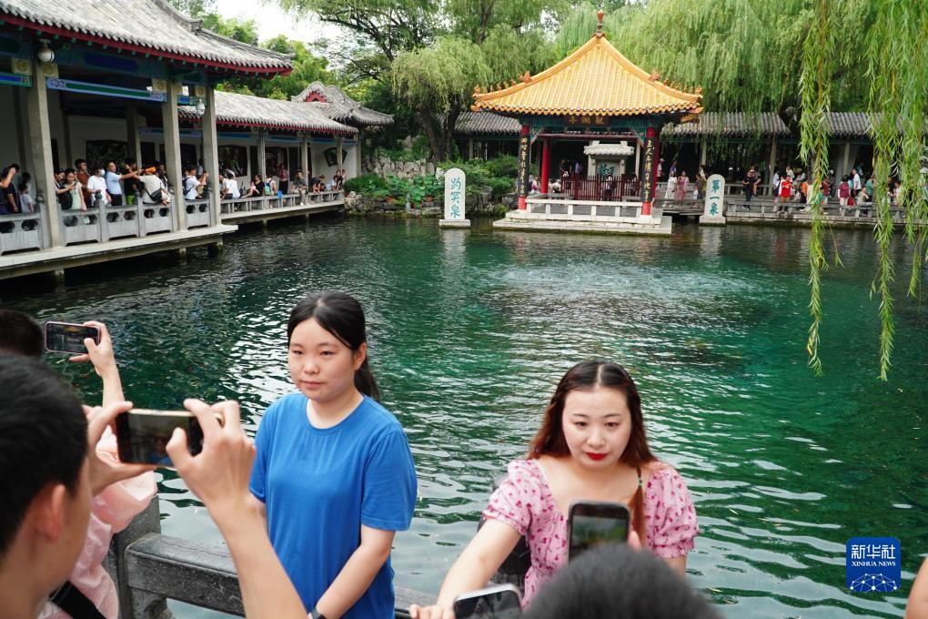 進入夏季以來,位于山東省濟南市的趵突泉吸引了大量暑期旅游的游客前來觀賞。